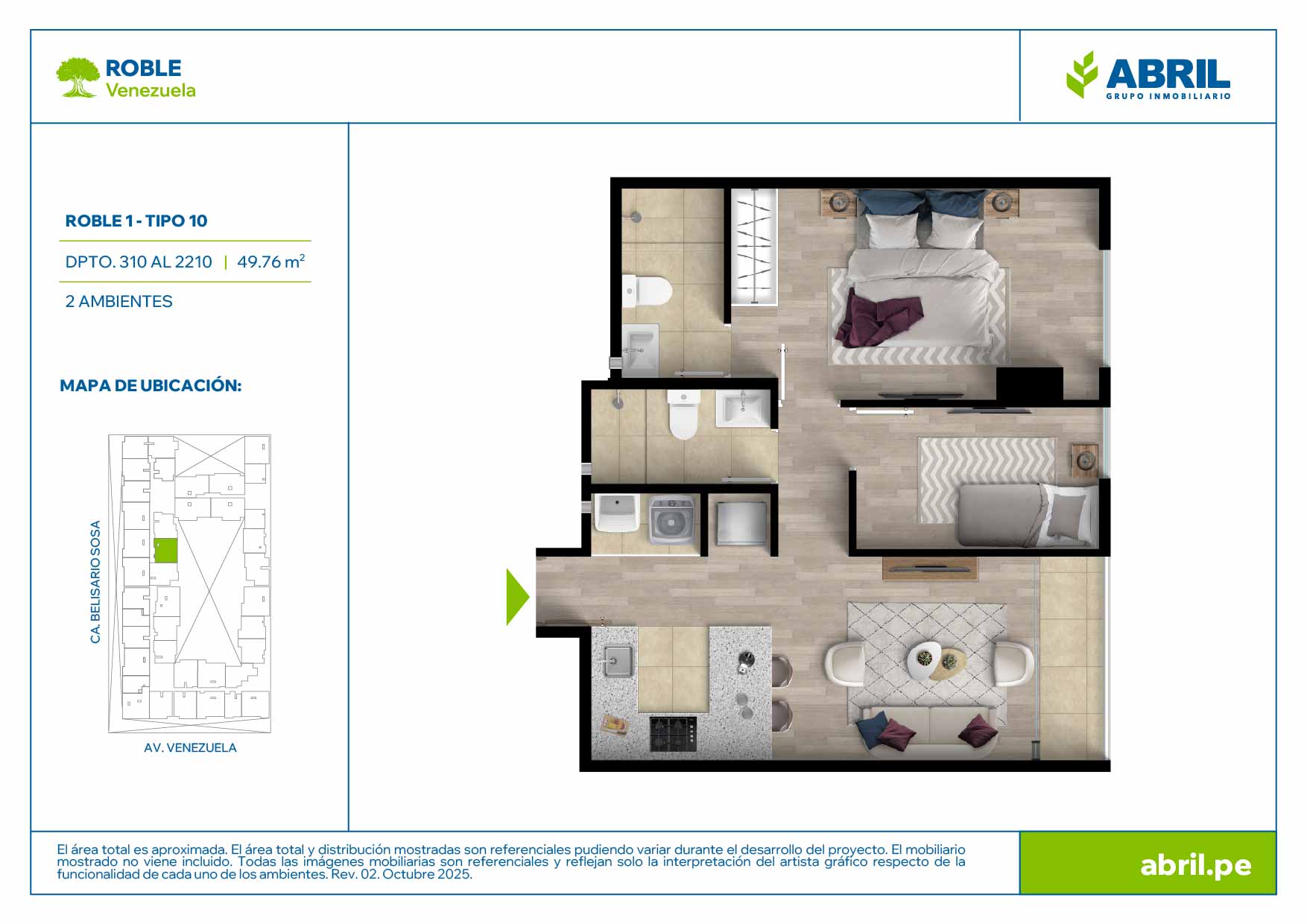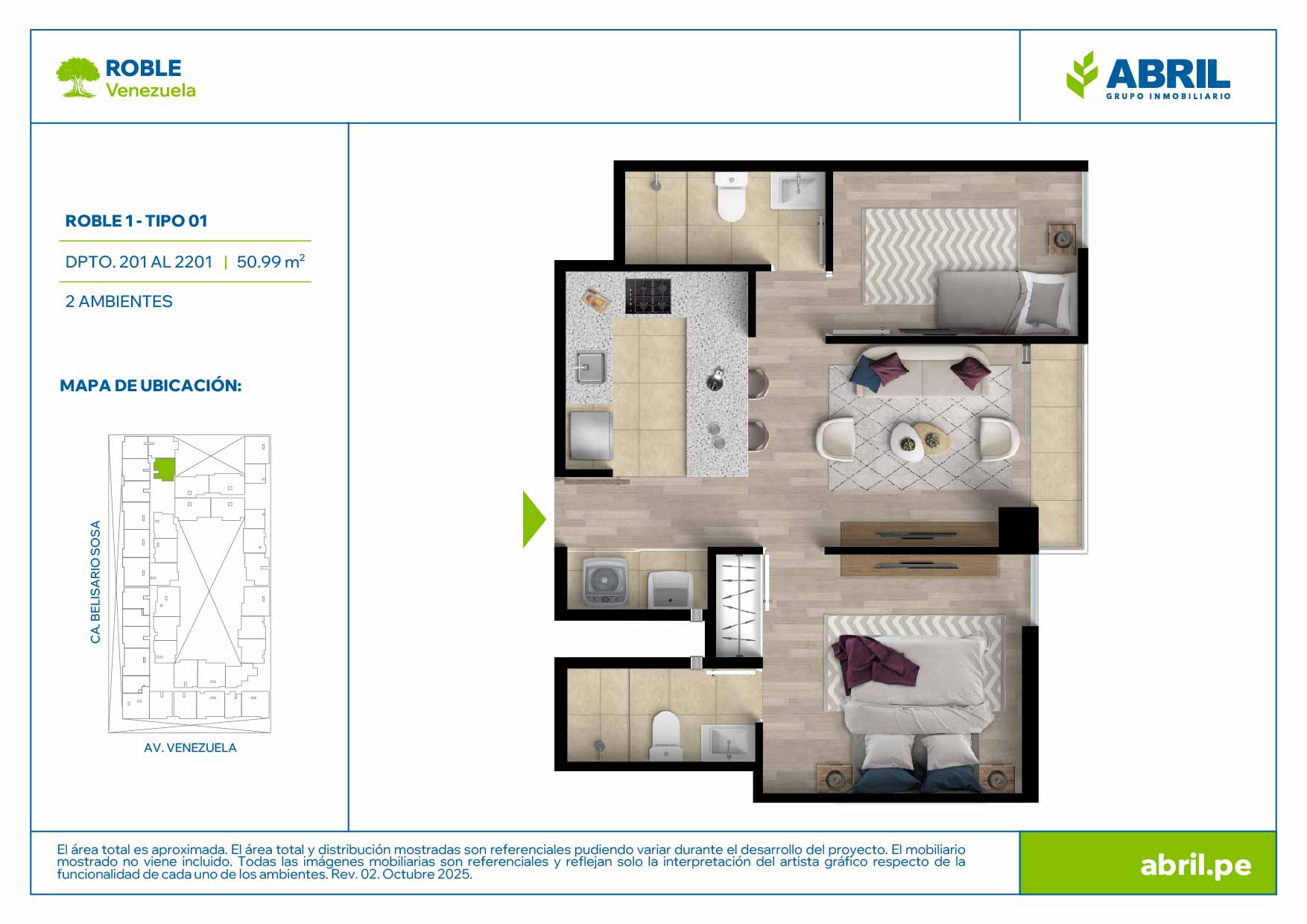 *Precio válido para las separaciones de departamentos realizadas del 01/11/2025 al 30/11/2025 y/o hasta agotar stock. Precio desde aplica para Loto dpto ROB-1-2211.