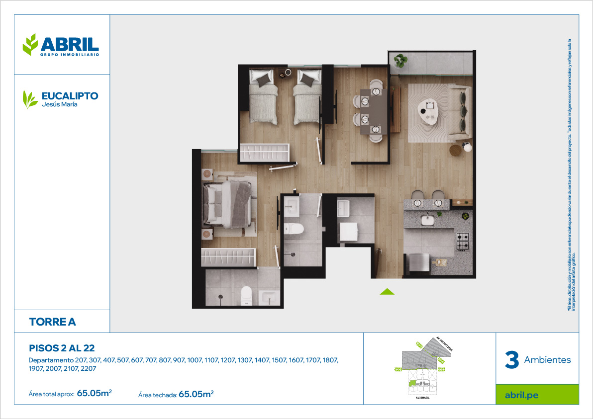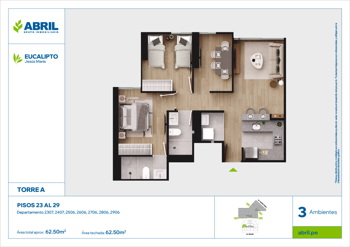 El área distribución y mobiliario son referenciales pudiendo variar durante el desarrollo del proyecto. Todas las imágenes son referenciales y reflejan solo la interpretación del artista gráfico.
