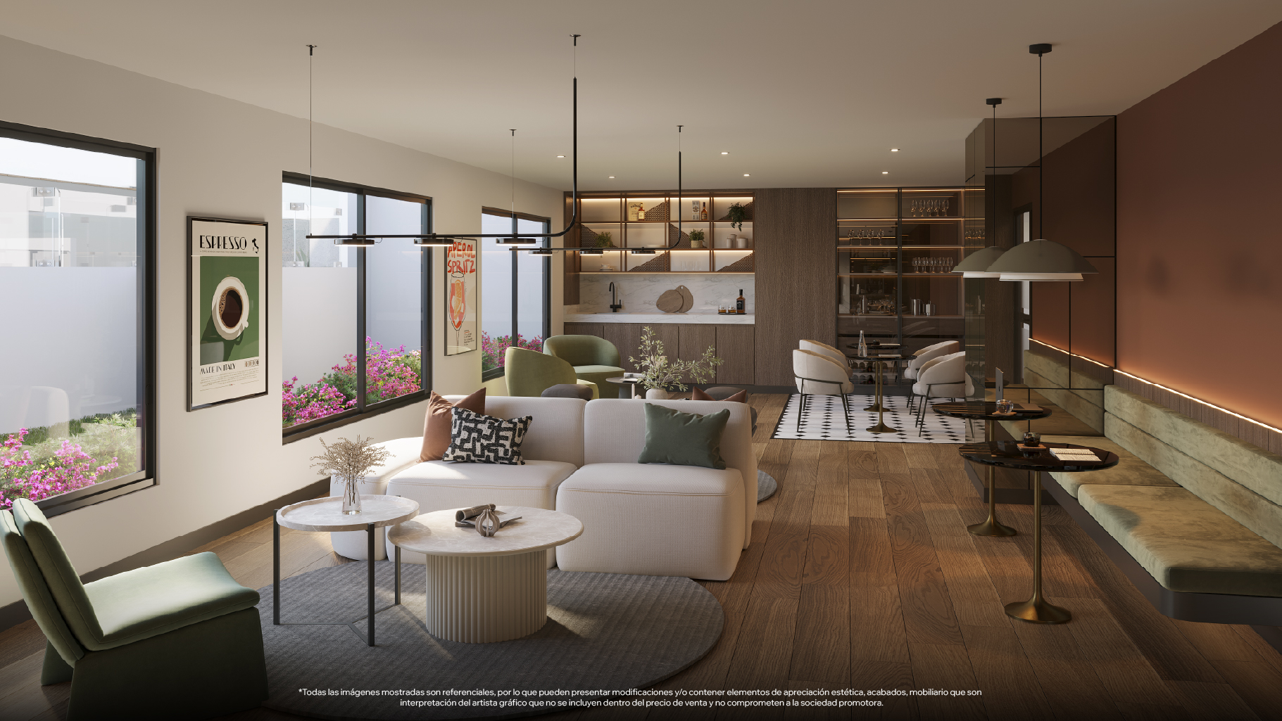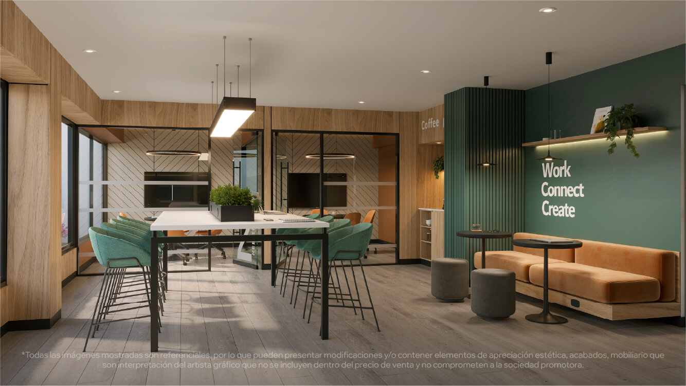 El área distribución y mobiliario son referenciales pudiendo variar durante el desarrollo del proyecto. Todas las imágenes son referenciales y reflejan solo la interpretación del artista gráfico.