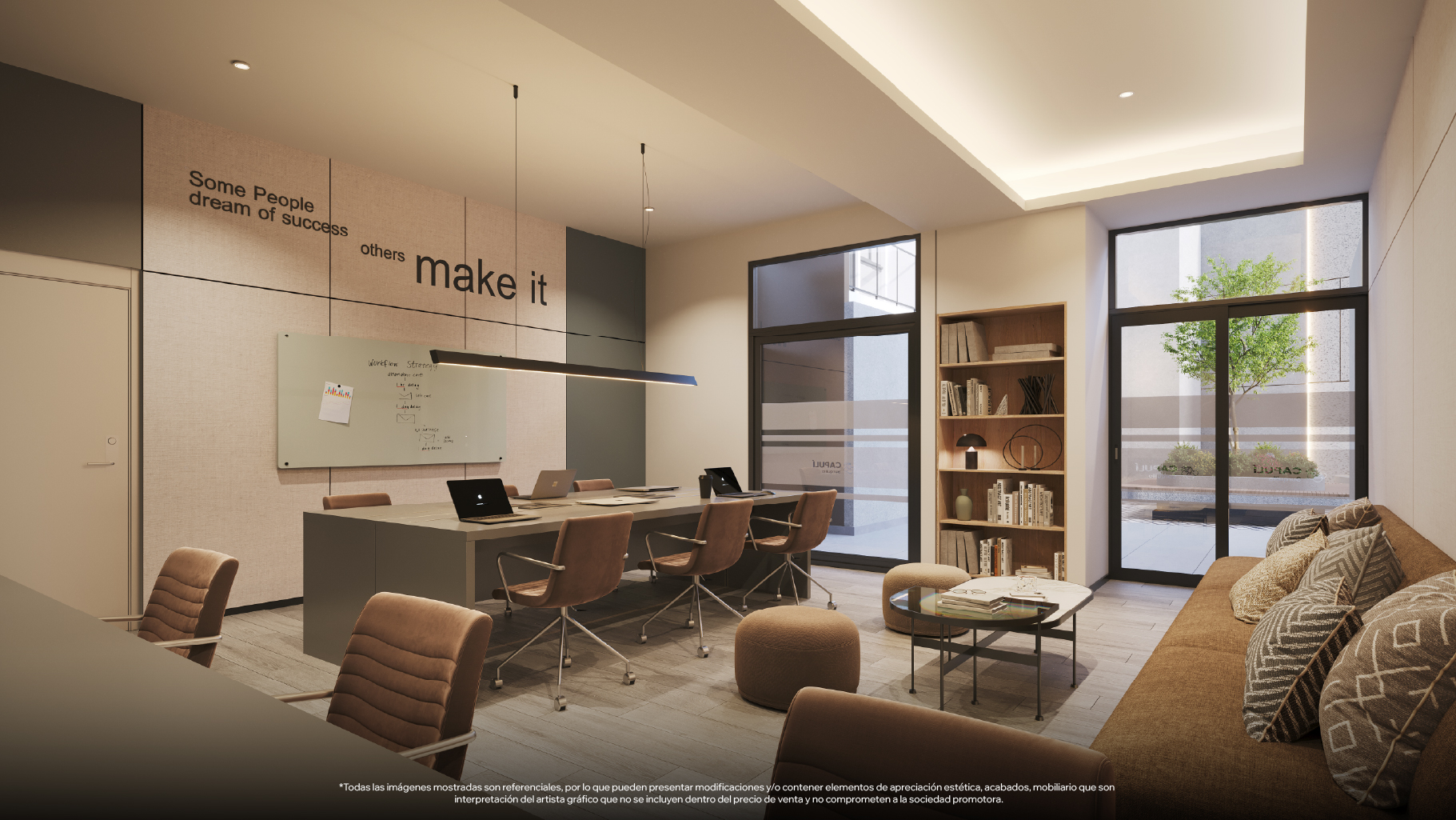 El área distribución y mobiliario son referenciales pudiendo variar durante el desarrollo del proyecto. Todas las imágenes son referenciales y reflejan solo la interpretación del artista gráfico.